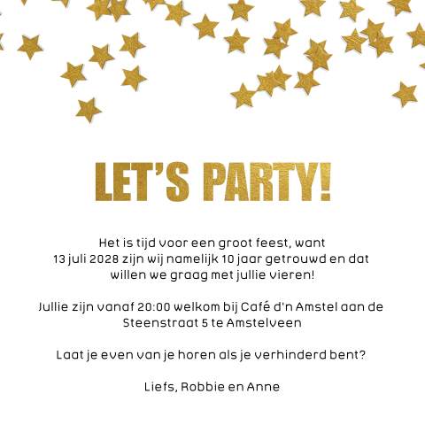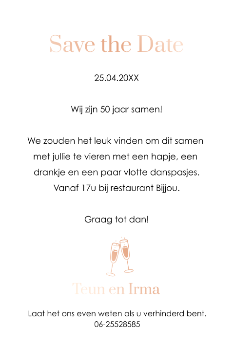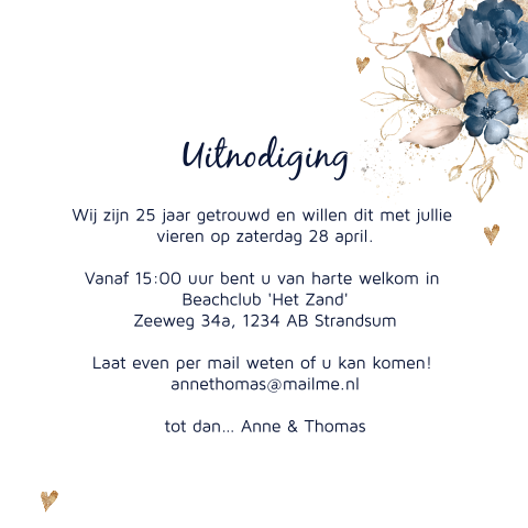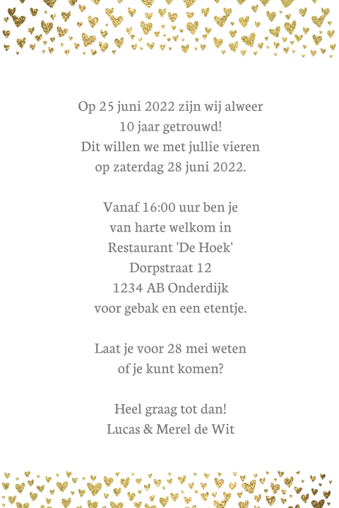 Wonderbaarlijk tekst uitnodiging 25 jaar getrouwd — trouwpost. Steeds heb ik er ook wat tekst bij geschreven in mooie letters en soms ook wat leuke anekdotes erbij. Jouw moet al weten 30 jaar getrouwd tekst je niet echt? Deze keer heb ik de kaart anders gevouwen zoals je ziet. Ze zijn 5 jaar getrouwd. Deze kaart heb ik gemaakt voor durvina en haar man ze zijn vandaag 15 jaar getrouwd. En we danken god dat hij er was in al die jaren. '15 jaar getrouwd' (kristal) is een veel populairdere huwelijksverjaardag bij ons. Op zoek naar een kadootje voor een bruidspaar wat 25 jaar getrouwd is? Stuur het echtpaar daarom een kaartje met een leuke 25 jaar getrouwd tekst! Hiervoor heb ik de al wat oudere champagneglas mal van md gebruikt. Als je je 12,5 jarig huwelijk groots hebt gevierd is het misschien leuker om met de kristallen bruiloft voor een intiem weekendje weg te kiezen, en te genieten van elkaar. Goedkope 25 jaar getrouwd afgeprijsd en dan ook nog de verzendkosten die goedkoop zijn! Een mooi overzicht van 25 jaar getrouwd teksten. Met dit zomers lenteweer (en de challenge van marianne design in het het kaartje hoeft niet met de post opgestuurd te worden, dus eens lekker groot gewerkt, dubbele witte basiskaart 15/15, daarop oranje watercolour. Instagram, 50 jaar getrouwd, facebook, origineel, romantisch, vrolijk, zonder foto, typografie, enkel, uitnodiging, goud, huiscollectie fuif. welgelukzalig is hij die den god jakobs tot zijn hulp heeft, wiens verwachting op den heere zijn god is. Wij zeggen volmondig…ja dat moet! Hoe dan ook, 25 jaar getrouwd zijn is een hele stap en is iets wat veel mensen tegenwoordig helaas niet meer lukt. Op mijn instagram vind je nog meer foto's en een filmpje (in de bewaarde stories) als je het leuk vindt! Onder die prachtige tekst volgen een aantal kiekjes van mij als bruid en één foto van. 25 jaar getrouwd cadeau ideeën: Aan de binnenkant van de kaart verwerkte ik de datum van 50 jaar geleden en die van nu. Hallo allemaal, een tijdje terug maakte ik deze kaart in opdracht voor een echtpaar dat 50 jaar was getrouwd. Het huwelijksjaar 1980 en de tekst veertig zijn natuurlijk aan te passen. Mijn ouders zijn binnenkort 15 jaar getrouwd en ik wilde ze verassen met iets origineels. Stuk voor stuk heeft de zeker nodig voor u activiteiten dat ze allen dag nodig hebben. Bent u op zoek naar 25 jaar getrouwd? Een 25 jaar getrouwd uitnodiging versturen is eenvoudig met deze voorbeeld kaarten en voorbeeld teksten. De lijn juliette prachtig papier. Liefde is eindeloos, puur en oprecht.