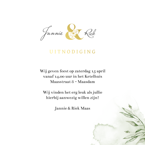 Tekst huwelijksjubileum 60 jaar getrouwd. Bij dit prachtige getal hoort natuurlijk een speciale en originele uitnodiging kaart. Kies een ontwerp uit de collectie of maak een jubileumkaart helemaal zelf. Goed dat ik niet mee moet ik ben benieuwd. In mijn vrije tijd ben ik graag creatief bezig. Plaats een trouwfoto op de uitnodigingen 60 jaar getrouwd. Jubileumkaart uitnodiging botanisch 60 jaar getrouwd. Dat is een grootse mijlpaal, waarvan niet veel mensen kunnen zeggen dat ze dat bereikt hebben. | proefdruk 1 60 jarig huwelijksjubileum. Zijn jullie binnenkort 60 jaar getrouwd? Vorige week vierden leny en wim hun 60 jarig huwelijksjubileum! 60 jaar getrouwd, een diamanten huwelijk! Je bent nu al meer dan een halve eeuw samen en dat is iets waar je best fier op mag zijn. Feestelijke stijlvolle uitnodiging voor jullie 60 jarig huwelijksjubileum. Schrijf een originele uitnodigingstekst aan de binnenkant. Op zoek naar een tekst voor je huwelijksjubileum? 60 jaar getrouwd en nog steeds gelukkig? Waarom ze dat aan mij vragen, geen idee, want ik kan er zelf niets van. Jubileum & speciale leeftijden » 60 jaar. Verwonderlijk uitnodiging 60 jaar met. Maar het nadeel daarvan vind ik dat de keuze toch niet heel uitgebreid is. Je kan op diverse manieren uitnodiging huwelijksjubileum kaarten maken en. Jullie zijn 60 jaar getrouwd, gefeliciteerd met jullie diamanten bruiloft! Kies je favoriete huwelijksjubileum uitnodigingskaart en ga creatief aan de slag! Benieuwd hoe mooi jullie favoriete 60 jaar getrouwd uitnodiging er gedrukt uitziet? Een mooie jubileum uitnodiging 60 jaar getrouwd met een wassen zegel en touw op een oud papieren achtergrond. Lieve familie en vrienden, 21.915 dagen geleden* zijn wij getrouwd. Speciale leeftijden van 1 tot 80 jaar. 60 jaar huwelijk is wat men noemt een diamanten huwelijk en dit hebben we dan ook opgenomen in het ontwerp. 25 jaar getrouwd jubileumkaarten & uitnodigingen maken gratis proefdruk als best beoordeeld voor 20:00 besteld.nodig vrienden en familie uit voor een bijzonder huwelijksjubileum. Ik vind het zelf wel een leuke vondst.