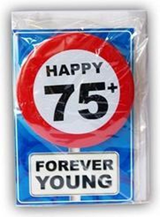 Uitnodiging of felicitatie voor 75 jarige verjaardag.