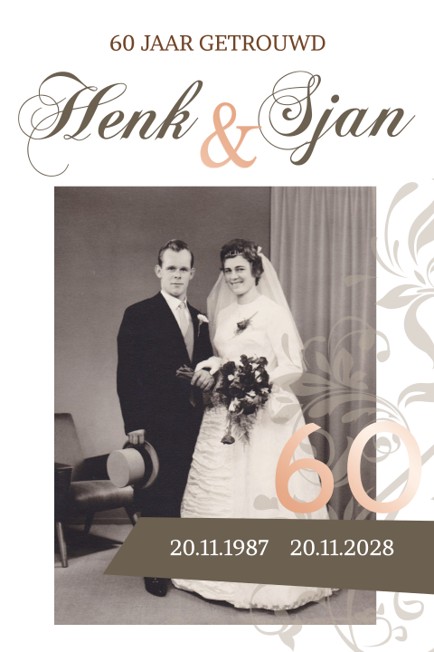 Mooie uitnodigingen, gemakkelijk zelf aanpassen, ruimte voor persoonlijke foto. 60 jaar getrouwd en nog steeds gelukkig?