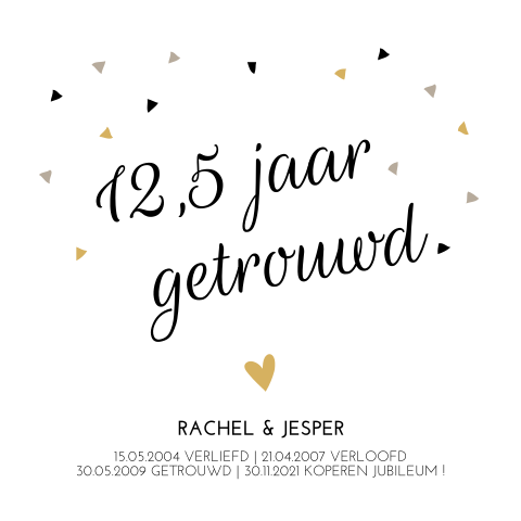 Jubileum 12 1/2 jaar dameskoor. Verschillende artikelen/decoratie voor 12,5 jaar getrouwd vind je bij de feestxpert! Pas het kaartje eenvoudig aan naar je eigen wens met onze online ontwerptool en bestel een proefdruk.