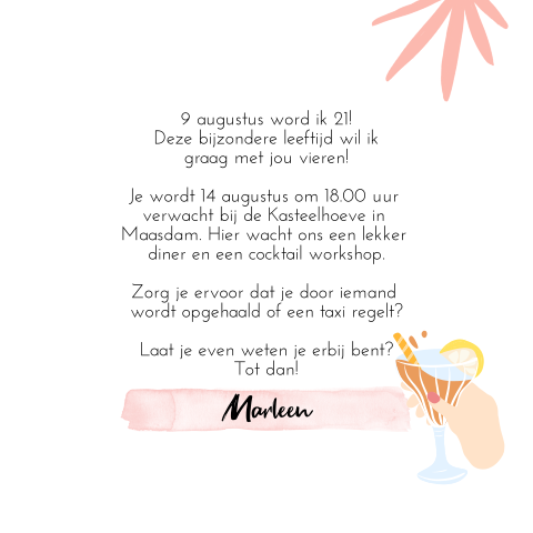 En mag je eindelijk alcohol drinken stemmen en je éigen kleren wassen. Uitnodiging 21 jaar & 21 diner. Denk bij het aanpassen van de gefeliciteerd met je 21e verjaardag tekst altijd goed na wat leuk en niet leuk is.