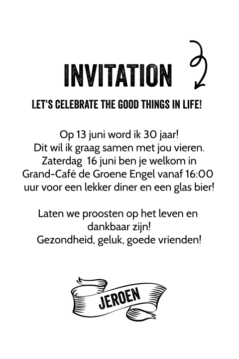 Een onvergetelijke 30e verjaardag toegewenst! Home versiering verjaardag versiering 30 jaar 30 jaar verjaardag. Stuur hem of haar dan een kaartje met een mooie verjaardagswens. Eindelijk een echte man of dame, maar nog jong genoeg om toch nog kinds te blijven! For the 30th birthday of de onderbroek in nijmegen i made a 'vlog', this is it! Ik weet, tekst verjaardag vrouw 30 jaar, jij houdt van bloemen, and happy wishes too. Een groot feest in de tuin met barbecue en bier of juist met bubbles & bites. Slingers verjaardag 30 jaar man gedicht — verjaardag cheque bol.| verjaardag tegeltje met spreuk (30 jaar: Ken jij iemand die binnenkort dertig jaar wordt? 60 jaar verjaardag plaatjes met gedichtje voor verjaardag 60 jarige. Leuke teksten met felicitaties voor verjaardagen zoek je een leuke tekst voor een verjaardag? En daar hoort natuurlijk een passende kaart bij. Het is snel gegaan en bijna niet te geloven. Leuke verjaardagsteksten of grappige teksten met felicitaties voor een verjaardag. Stamp or label with the text celebrating 30 years anniversary, vector illustration. Op deze website kun je verschillende voorbeelden bekijken van originele verjaardagswensen, teksten, spreuken. Een jaar ouder worden is erg, maar de vele cadeaus die je dan krijgt maken veel weer goed. Hoe kun je iemand verrassen die 30 jaar of ouder wordt? Een onvergetelijke 30e verjaardag toegewenst! Dag datum word ik nog volwassener en is het de dag dat ik mijn verjaardag vieren mag! Happy birthday amanda tq via: Je ziet er nog beeldig uit. Te gekke tekst verjaardagsuitnodiging 30 verjaardag verjaardag. Voorbeelden van felicitatie teksten aan 40 verjaardag: Verjaardag teksten om te gebruiken op een verjaardagskaart of een bloemetje. Welkom op tram 3 schoonheid. Je bent al op de helft, de volgende 30 gaan een stuk sneller. Teksten voor uitnodigingskaarten verjaardag 30 jaar: Veel liefs op je verjaardag. Kies een hippe uitnodiging verjaardag 30 jaar, wijzig eenvoudig tekst en kleur en maak gemakkelijk een proefdruk. 30 jaar zijn betekent dat je de keus hebt tussen jong zijn en gek doen of oud zijn en je volwassen gedragen de beste keus is ongetwijfeld een beetje gek te zijn en ook een beetje volwassen.