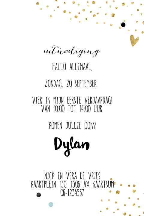 Uitnodiging Eerste Verjaardag