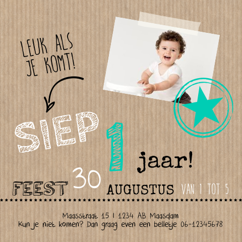Personaliseer je uitnodigingskaart je met een eigen foto, teksten en/of logo. Originele tekst verjaardagsuitnodiging 1 jaar.