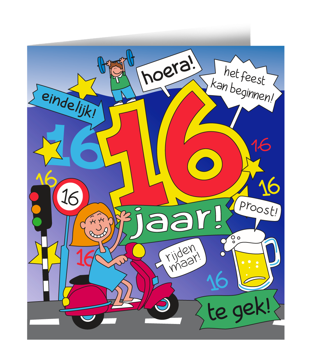 Vind de juiste verjaardagskaart hier. Bestel hem dus direct online en verras iemand met de leukste. Stuur vandaag nog een kaartje om iedereen uit te nodigen of om iemand te feliciteren die 16 jaar wordt.