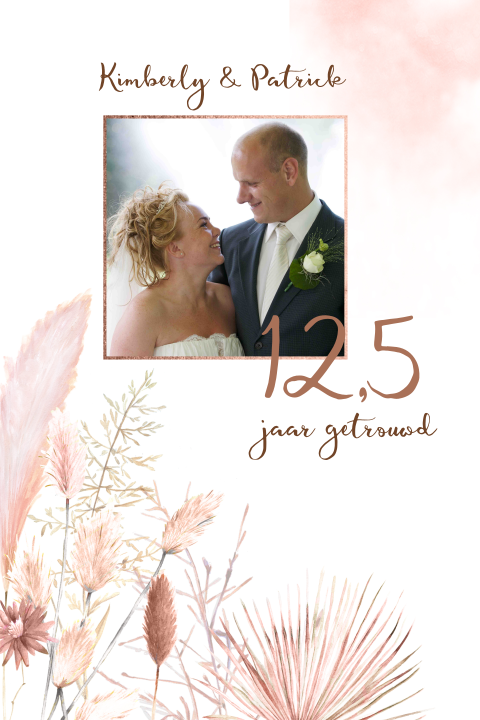 Met je eigen afbeelding of met een het belangrijkste onderdeel van je persoonlijke uitnodiging is de foto. Dan is het hartstikke leuk om deze speciale dag te vieren met vrienden en familie. Al 12,5 jaar getrouwd al 12,5 jaar man en vrouw elkaar al 12,5 jaar trouw dat moet men eenmaal vieren met eten en drinken.