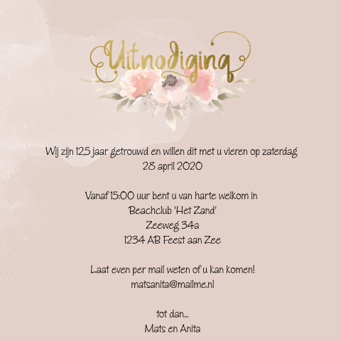 Reden voor een feesjte met bijpassende uitnodgingskaart. Reden voor een feesjte met bijpassende uitnodgingskaart. Dat happy moment moet absoluut gevierd worden, vinden wij! Daarom is dit een speciale kaart voor wie zijn of haar 100ste verjaardag in stijl wil aankondigen! Liefde is eindeloos, puur en oprecht. Al 12,5 jaar getrouwd al 12,5 jaar man en vrouw elkaar al 12,5 jaar trouw dat moeten wij vieren met eten en drinken dit huwelijksbootje gaat nooit zinken voor altijd samen, nooit meer alleen dit is voor altijd, dat wisten wij meteen al 12,5 jaar. Wanneer je samen bent wordt verdriet gedeeld en geluk verdubbeld. Meer dan 18 jaar ervaring. Een moment in je huwelijk om samen met familie en vrienden bij kies hier een 12,5 jaar getrouwd uitnodiging, plaats je eigen teksten en/of foto en bestel eenvoudig een gratis proefdruk om de kaart vrijblijvend thuis te. Bestel gemakkelijk een proefdruk voor € 1,00. Jubileum uitnodiging 12,5 jaar getrouwd. Before downloading you can preview any song by mouse over the play button and. En misschien zijn jullie niet meer met z'n 2en, maar zijn jullie een gezin geworden met kinderen en huisdieren. Met vrolijke confetti, en ruimte voor een eigen foto op de achterzijde. Maak nu de uitnodigingen voor het 12/5 jaar getrouwd feest en nodig jullie vrienden en familie uit voor een geweldige fuif. Dit kaartje is toegevoegd aan je eigen collectie. 400.000 klanten gingen je voor. Met deze mooie kaart met hout achtergrond kun je iedereen een unieke uitnodiging sturen voor jullie jubileum. 12,00 cm x 12,00 cm. Jubileum 12,5 jaar getrouwd met goudkleurige glitters en confetti. Deze kaart is mooi met een kraft envelop en een bijpassende sluitzegel! 12,5 jaar getrouwd uitnodiging maken gratis proefdruk meeste tevreden klanten gratis pakketjes bekijk hier nog meer teksten voor jubileum uitnodigingen. Jubileum huwelijk, uitnodigingskaart, wit, jubileumkaart, staand, icoontjes, hip, enkel, huwelijksjubileum, modern, origineel, 12,5 jaar getrouwd, symbool, zonder foto, clean, tijdlijn. Tekst kaartje 12,5 jaar getrouwd uitnodiging: In onze collectie met 12,5 jaar getrouwd uitnodigingen vind je meer dan 600 uitnodigingskaarten voor jullie huwelijksjubileum. Wij versturen de kaarten voor je op de gewenste datum !!! Lovz | uitnodiging 12,5 jaar getrouwd foto, lijnen, kraft print. Home > trouwkaarten huisstijl > jubileum kaarten > uitnodiging 12,5 jaar getrouwd met krans. Alles in beeldhouwen & vormen. Deze 12,5 jaar jubileum kaart met groot hart in de kaart heeft een elegante uitstraling en het grote hart van goud geeft de kaart een chique uitstraling. Project x haren = project x haren (ook wel facebookfeest) was een gebeurtenis die begon met een uitnodiging voor een verjaardagsfeest van een meisje op de.
