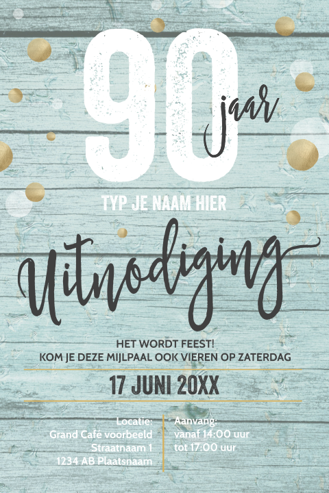 Hippe Uitnodiging 65e Verjaardag Met Goudlook Ballonnen Op Hout from www.prettyorange.nl