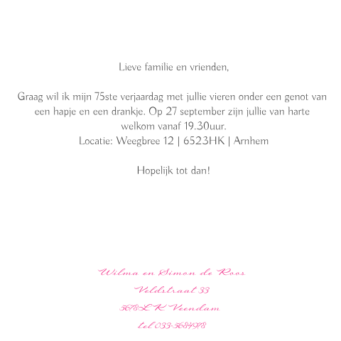 Ken je iemand die binnenkort jarig is? Supersnel in huis en achteraf betalen. Gefeliciteerd met je 75e verjaardag!