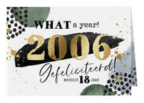 Dubbele wenskaart verpakt in cellofaan met envelop, gedrukt op een licht karton 200gr. Verjaardagskaart 18 jaar 17cm aantal: Zo krijg je bij je eerste bestelling de eerste kaart gratis.