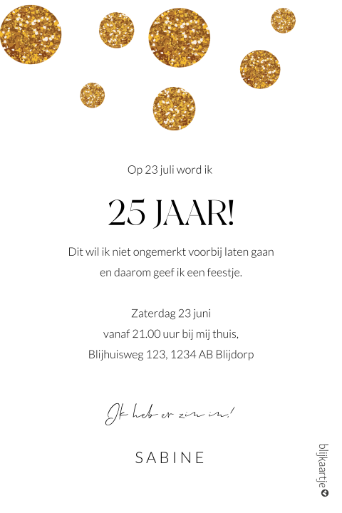 Leuke verjaardagskaart voor een 23e verjaardag. De kaart heeft stijlvolle goudlook effecten (geen goudfolie) en ruimte voor een groet. Dubbele wenskaart verpakt in cellofaan met envelop, gedrukt op een.